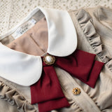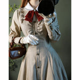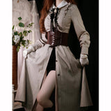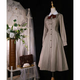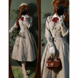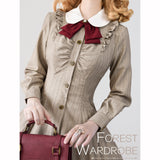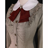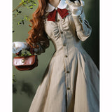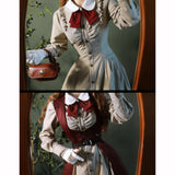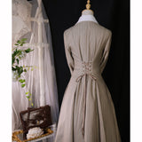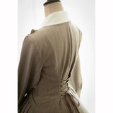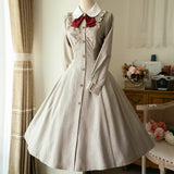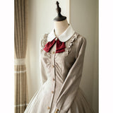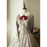 美しいシルエットとなるように精緻に計算されたクラシカルなワンピース。ウエスト位置が高く、裾にかけて滑らかな曲線を描きながら、フレアに広がったデザイン。首元にはリボンが装飾され、肩部分にはフリルが装飾され、バックには編み上げが装飾されています。華やかでエレガントなお嬢様に。