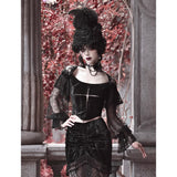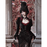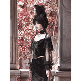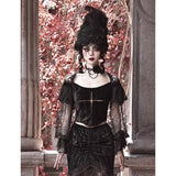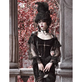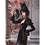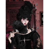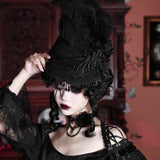 ドラキュラ城に住む吸血鬼の貴族からインスピレーションを受けて仕立てられた帽子。ヴィクトリア朝時代のゴシック様式を想起させるデザイン。大きな蜘蛛と蜘蛛の巣を想起させるレースが装飾されています。
