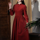 格調高きお嬢様を美しく演出してくれる深紅色のワンピース。ハイネックの襟に装飾されたレースが可愛らしくて素敵。ちょっぴりレトロで艶やかな雰囲気を放っています。妖艶なお嬢様が一層煌めくアイテムです。