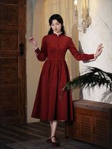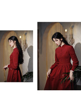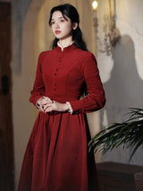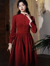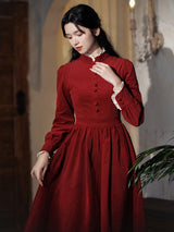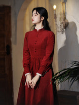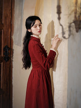 深紅のお嬢様コーデュロイワンピース