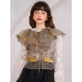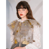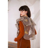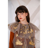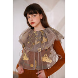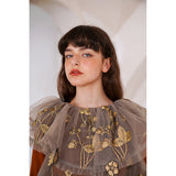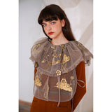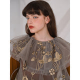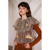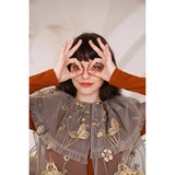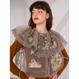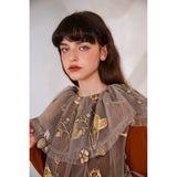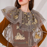 18世紀のヨーロッパの植物図鑑の挿絵を刺繍したチュールケープ。未知の土地で出会った、名も知らぬ植物たち。世界の片隅でひっそりと花を咲かせた不思議な植物たち。アンティークなイラストにはロマンが満ち溢れています。
