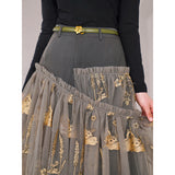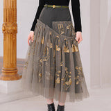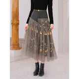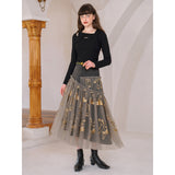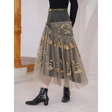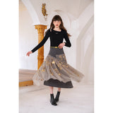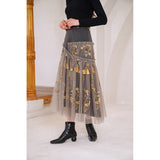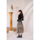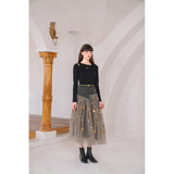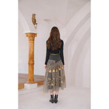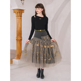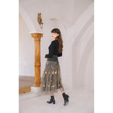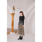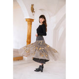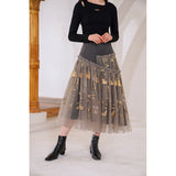 18世紀のヨーロッパの植物図鑑の挿絵を刺繍したチュールを組み合わせたスカート。未知の土地で出会った、名も知らぬ植物たち。世界の片隅でひっそりと花を咲かせた不思議な植物たち。アンティークなイラストにはロマンが満ち溢れています。