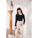 18世紀のヨーロッパの植物図鑑の挿絵を描いた七分丈のクロップドパンツ。未知の土地で出会った、名も知らぬ植物たち。世界の片隅でひっそりと花を咲かせた不思議な植物たち。アンティークなイラストにはロマンが満ち溢れています。