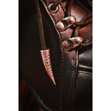 ゴシック調を纏った、アートピースのようなレースアップヒールシューズ。シャープなスクエアトゥに、くびれた台形ヒールが特徴的。アッパーには編み上げディテールとメタルパーツが配置され、構築的でモードな印象を与えます。側面の立体縫製やサイドラインの切り替えも印象的で、角度によってシルエットが美しく際立ちます。まるでファンタジーの世界から抜け出してきたような存在感を放つアイテム。