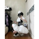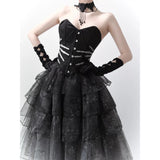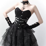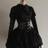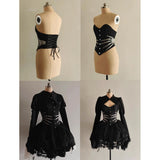 解剖学や標本、病理的な美しさに着想を得たコルセット。浮かび上がる手骨。それはまるで遺された美の痕跡がワルツを奏でるかのような、静かで劇的な存在感を放ちます。ゴシックでダークな幻想の世界を纏ってみて。