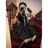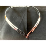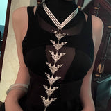 退廃的な美学を纏う、ゴシック調の脊椎パーツを組み合わせたチョーカーネックレス。神秘性と背徳感を漂わせるシルバーモチーフの連なりが印象的。ネックラインから胸元にかけて垂直に連なる左右対称の繊細な金属細工が、まるで聖なるシンボルを綴るかのように連結され、最下部には十字架のチャームがあしらわれています。