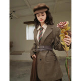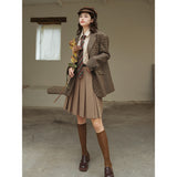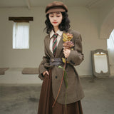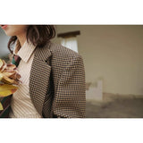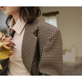 洗練されたスタイリッシュな雰囲気に演出してくれる千鳥格子柄のウールジャケット。角張った肩のラインがクラシックな印象を与えてくれる。内側には滑らかな裏地がついています。時代を超えて愛される格調高きアイテム。