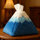 富士山の端正なシルエットをふんわりとした布地で形取ったティッシュボックス。山頂の白雪から麓へ向かって澄んだブルーが美しくグラデーションするデザインで、頂から雲のようにティッシュが立ち上がる姿が愛らしい。