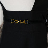 シンプルながら洗練されたデザインが特徴的な細身のレザーベルト。ゴールドのバックルがアクセントとして際立ち、クラシックでエレガントな印象を与えます。ウエストラインを強調し、シルエットを美しく見せてくれる。