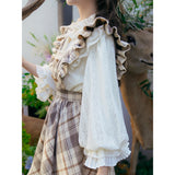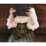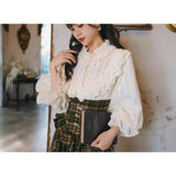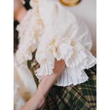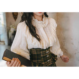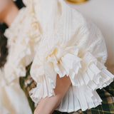 圧倒的な存在感を放ったヴィクトリアンブラウス。ふわりとした膨らみのある袖が印象的。上品なレース素材で仕立てられ、襟元や袖口にはフリルがたっぷりとあしらわれています。袖口のプリーツディテールが繊細でフェミニンな印象を与えます。