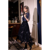 月の震えが遺した傷痕の詩を胸元に刺繍したブラウス。大きなリボンのように見える立体的なセーラーカラーが、胸元から肩にかけて立体的に広がり、華やかでエレガントな印象を演出してくれる。クラシカルでガーリーな印象を持つアイテム。
