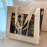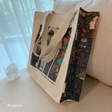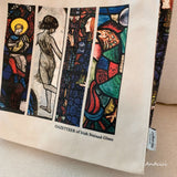 ハリー・クラークの『アイルランドのステンドグラス』を描いたトートバッグ。アイルランドを代表する挿絵画家でありステンドグラス職人でもあったハリー・クラーク。教会などの窓を飾る色鮮やかなステンドグラスは、光が満ち溢れた幻想的な世界へ誘ってくれる。厚手のキャンバス生地で作られており、たっぷりの収納力が嬉しい。内側にはポケットが付属しています。パソコンやお気に入りの本を詰めてお出掛けしてみて。