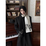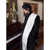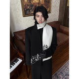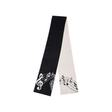 音楽と沈黙、その狭間にある美しさを形にしたような、アートピースのようなマフラー。静寂の中に音楽が宿るような詩的なデザイン。モノクロームのコントラストが印象的で、黒と白の両面には未完成の旋律が描かれています。五線譜に舞う音符たちは、まるで止まった時間の中で続きを待つメロディのよう。柔らかな生地が首元を包み込みながら、まるで一曲の楽章を纏うように静かに響きます。
