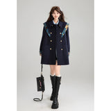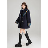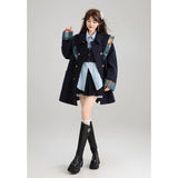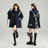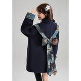 孤高の西洋画家が描いた名画を組み合わせたダブルブレストのコート。憧れの名画はいつの時代も心をときめかせてくれる。ショルダーラインから背中にかけて流れるスカーフ調の装飾が印象的で、背面に結ばれた大きなリボンがまるで絵画のワンシーンのように優雅さを演出しています。重厚感のあるシルエットに、金ボタンが品格を添え、内に秘めた可憐さと知的な強さを同時に表現しています。洗練とロマンが共存する、アートピースのようなクラシックモードコート。