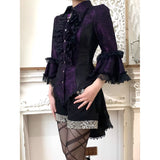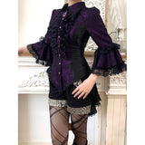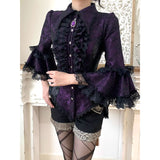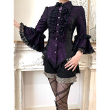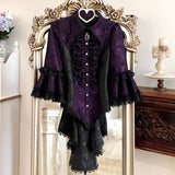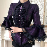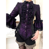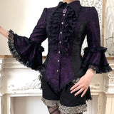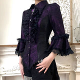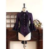 西洋貴族のプリンセスジャガードブラウス | Half Sleeves - Dark Purple[2026年6月上旬-6月下旬発送予定]
