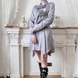 西洋貴族のアシンメトリーワンピース(ミドル丈) | Long Sleeves - Silver Purple[2026年6月上旬-6月下旬発送予定]