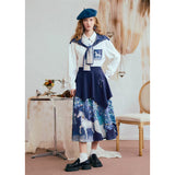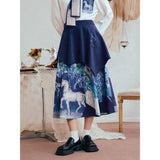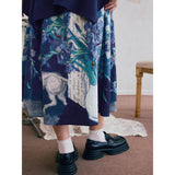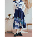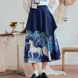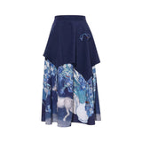 ゴッホが描いた『アイリス』と『馬の石膏像』にオマージュを捧げるレイヤードスカート。アシンメトリーなオーバースカートがやわらかく腰元を包み込み、その下から広がるスカートには、美しい絵画が重なり合うように描かれています。装飾されたリボンが控えめな存在感を放っています。