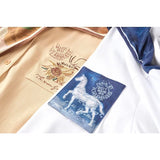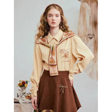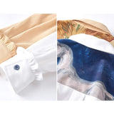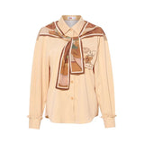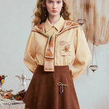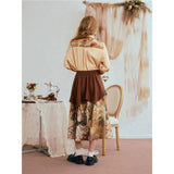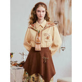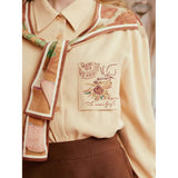 ゴッホが描いた『向日葵』にオマージュを捧げるスカーフブラウス。クラシカルなシャツカラーと丸みのあるボタンが端正な印象をつくり、肩から胸元にかけて配されたスカーフのような切り替え布が装いに奥行きを与えています。まるで絵画を纏うような、芸術性とカジュアルさを兼ね備えたアイテム。