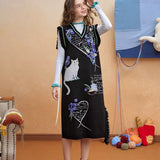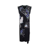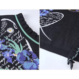 ゴッホが描いた『アイリス』にオマージュを捧げるノースリーブのニットワンピース。すっきりとした縦のラインを描くストレートシルエットで、肩まわりにはフリルが施されています。背面はリブ調のシンプルな編み立て。まるで美術館からそのまま切り取ってきたような芸術的な存在感を放っています。