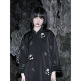 森深くの竹林のパンダを刺繍したチャイナトップス。竹を美味しそうに食べたり、岩山に登り得意な笑みを放ったり、しなる竹と楽しそうに戯れたり。天真爛漫に過ごすパンダが愛らしい。まるで文人墨客に親しまれた一幅の絵画みたいなアイテム。