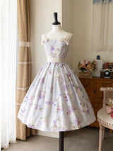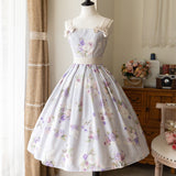 三色菫と蝶々の水彩画クラシカルジャンパースカート(ライトパープル)