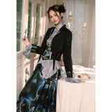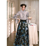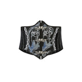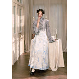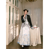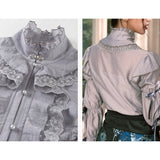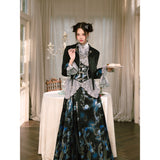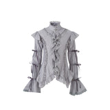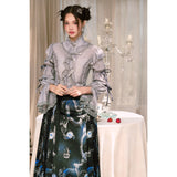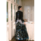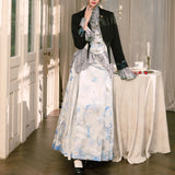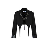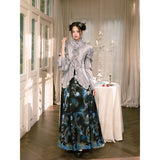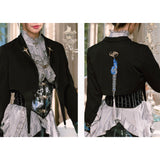 伝統の美しさを纏いながら、近未来的なサイバーエッセンスを融合したアイテム。プリーツスカートとコルセットには、繊細な蛇骨デザインが、水のようにしなやかな曲線を描いています。ショート丈のジャケットには存在感のあるチェーンが施されており、たっぷりのフリルが装飾されたブラウスは中世時代の王妃みたいに演出してくれる。絶妙なコントラストが新時代のエレガンスを生み出します。伝統とモダンが交錯する、洗練されたスタイルに。