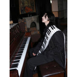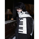 白と黒の鍵が織りなす楽曲の物語。ピアノの鍵盤をモチーフにしたマフラー。指先で触れられて初めて音楽が溢れ出す。解き放たれる瞬間を待つ潜在的な交響曲。それは、沈黙と音楽の境界線。軽やかな音色を想起させるマフラーをあなたに。