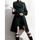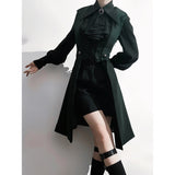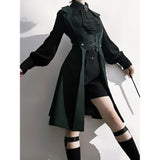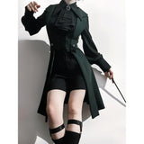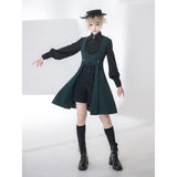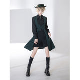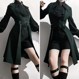 ウエスト部分に編み上げを装飾したロングベスト。ダークなブラウスやパンツと合わせると、ミステリアスな雰囲気が漂います。ボーイッシュな騎士コーデの出来上がり。騎士物語の世界に誘われてみては。
