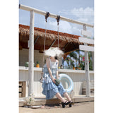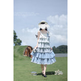 爽やかな青空の下に映える、ギンガムチェックとストライプを重ねたティアードワンピース。裾に向かって広がるティアードフリルが、歩くたびにふんわり揺れ、軽やかでロマンティックな雰囲気。夏の物語のヒロインみたいに。