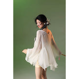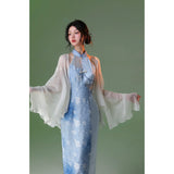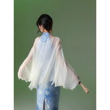 天空から降り立った神々しい麗しき姿に演出してくれるシフォンカーディガン。わずかに透ける透明感と、滑らかなドレープ感が特徴的。時を超越した不滅の美しさを放つ女神みたいに。