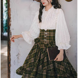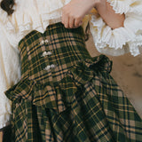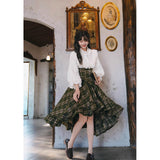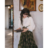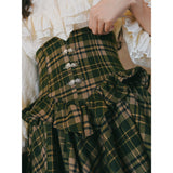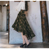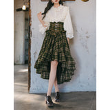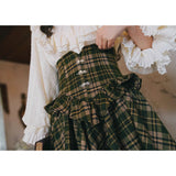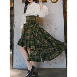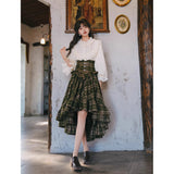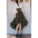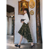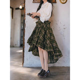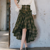 ロマンティックなシルエットを叶えてくれる。エレガントな雰囲気を醸し出しているハイウエストのロングスカート。ダークグリーンのチェック柄がクラシカルな雰囲気を演出し、施されたフリルのディテールと、前後で丈感が異なるフィッシュテールなデザインが立体感を与えています。動きに合わせて美しいシルエットを描くスカート。