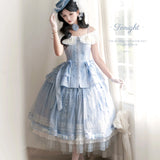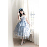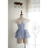約束の手紙の刺繍トップスと刺繍スカート - Light Blue[2025年10月下旬-11月下旬発送予定]