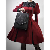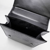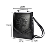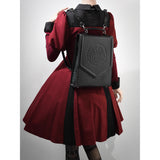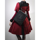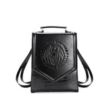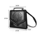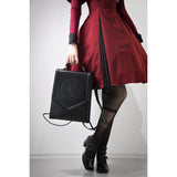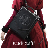複雑な骨格を有した脊柱生物を描いたレザーショルダーバッグ。複雑に組み合わさった骨片が描く、完璧な生命の設計図。艶のある”黒”の光沢が誘うミステリアスな世界。不朽の美しさを放つ生物学的アーチ。