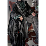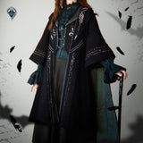 ゴシックな要素を取り入れた魔術師や魔法使いを彷彿とさせるマント。黒を基調とし、精巧な刺繍と装飾が施されており、神秘的な雰囲気を兼ね備えています。未知なる刺激を魔法世界に求めて。