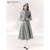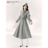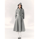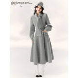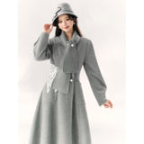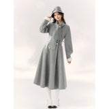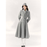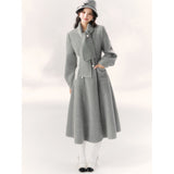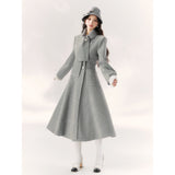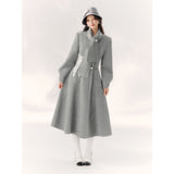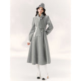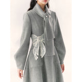 キュートさを忘れないウインタースタイル。クラシカルでエレガントなロングコート。白地のリボンが刺繍されており、リボンには煌びやかなパールが装飾されています。立体的なフォルムと、首元のフロントディテールがアクセントになっており、上品な雰囲気を演出しています。日常に落とし込んだプリンセススタイル。