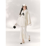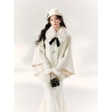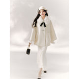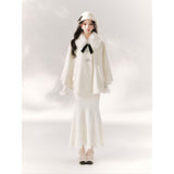 キュートさを忘れないウインタースタイル。ピュアな透明感を放つファーマント。エレガントでロマンティックな印象のアイテム。胸元には、ガールに戻れるキュートなブラックリボンが装飾されています。日常に落とし込んだプリンセススタイル。