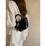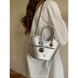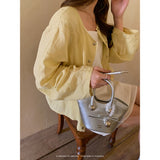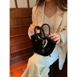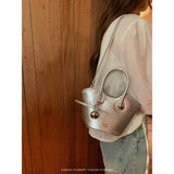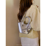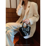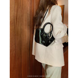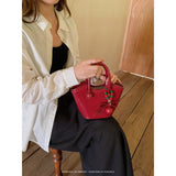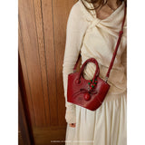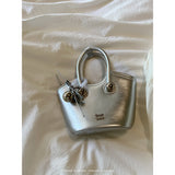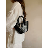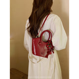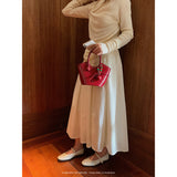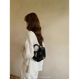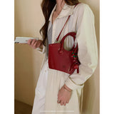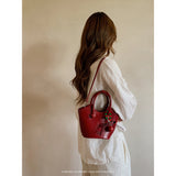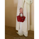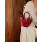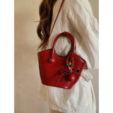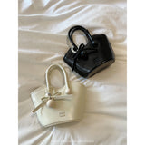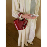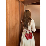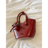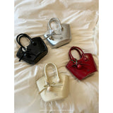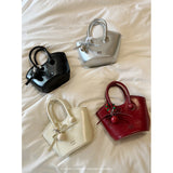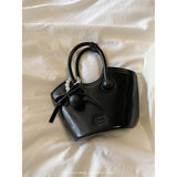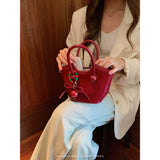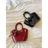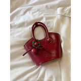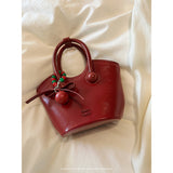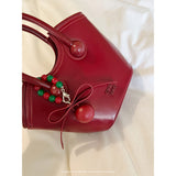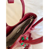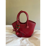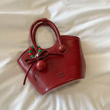 愛らしさと甘美さを象徴するさくらんぼのチャームをつけたハンドバッグ。ストラップをつけることでショルダーバッグにもすることができます。光沢のあるレザーに、シンプルながら上品なディテールが施されており、丸みのあるフォルムが柔らかさを感じさせます。