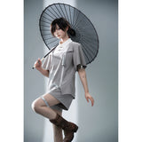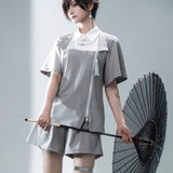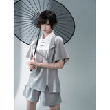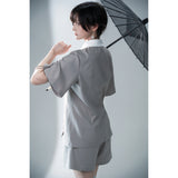 仙人になるための修行を行う架空世界。異国の薫りが漂うチャイナっぽさが魅力のトップスとハーフパンツ。トップスはサイドにジップアップが装飾された独創的なシルエット。唯一無二の個性を纏って。