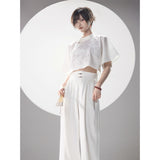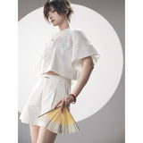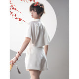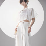 寒さの中でいち早く咲き、新しい季節の到来を告げる梅。厳しい冬の中で咲く、香り高い梅を刺繍したショート丈のチャイナトップスと、ハイウエストなワイドパンツ。控えめながらも、琴線が刺激されるアイテム。