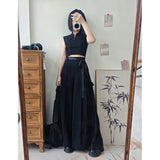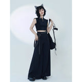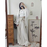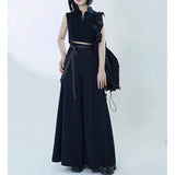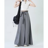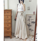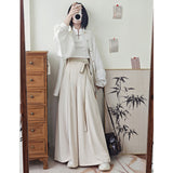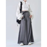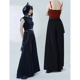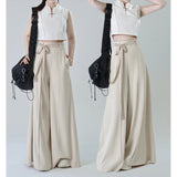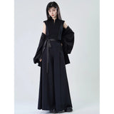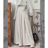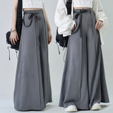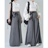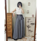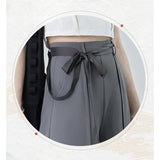 東洋的な要素をモダンに落とし込んだボリューム感のあるワイドフレアパンツ。まるでスカートのように広がるラインとなっています。ウエストはリボンタイ付きで、どこか袴を彷彿とさせるニュアンス。タフさとエレガンスを兼ね備えた仕上がりとなっています。
