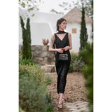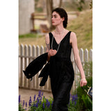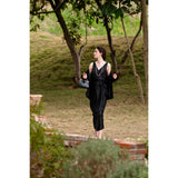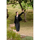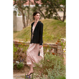 気高い品格を感じさせるエレガントなシルクワンピース。チャーミングに弾けるピンクと、闇夜のような翳りのある黒。毛羽だったようなテクスチャで輝くような光沢感を放っています。高貴な艶めきを纏ってみて。