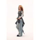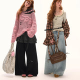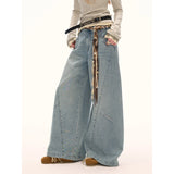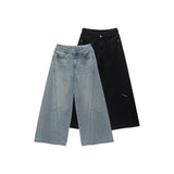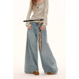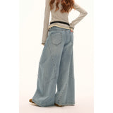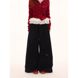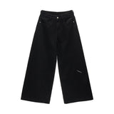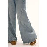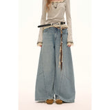 極端にワイドなシルエットのデニムパンツ。裾にかけてたっぷりと広がるワイドフレアで、足元を覆うほどの長さがあり、存在感のあるスタイル。カジュアルながらもシルエットで個性を際立たせる、ストリート感の強いデザインのパンツ。