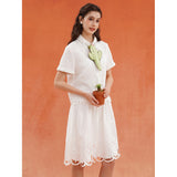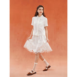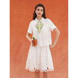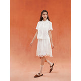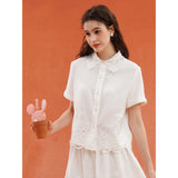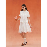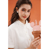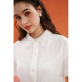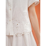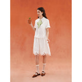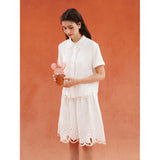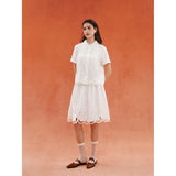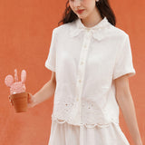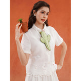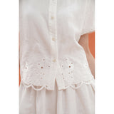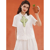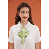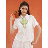 砂漠の大地で花をつけたサボテンを刺繍したブラウス。裾には立体的で繊細なスカラップ刺繍が施されており、さりげない遊び心とクラフト感をプラスしています。サボテンや雲をモチーフとした遊び心のあるカットワークが印象的。
