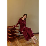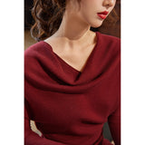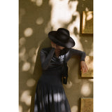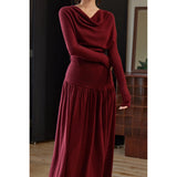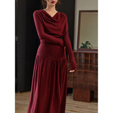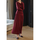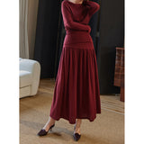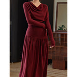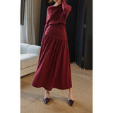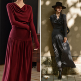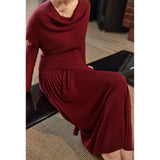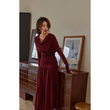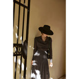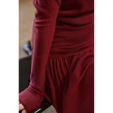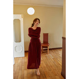 細部まで計算されたエレガントなスタイル。タイトなデザインながら、ネックラインに余裕を持たせたシルエットのニットトップスと、歩くたびに揺らめく姿が美しいロング丈のニットスカート。流れるようにしなやかな優雅さを纏って。