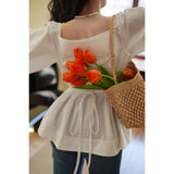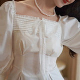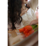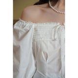 光を纏い、優雅に時を刻むホワイトシャツ。まるで古い絵画の額縁からふわりと抜け出したかのようなアイテム。首元から鎖骨にかけてのラインを美しく引き立ててくれるデザイン。ひとつひとつの細かなプリーツには、密やかな想いがそっと織り込まれています。エレガンスの物語を紡ぐ優雅なプロローグが刻まれています。