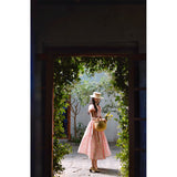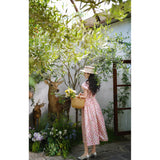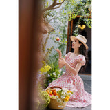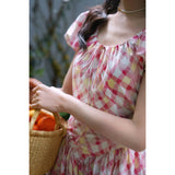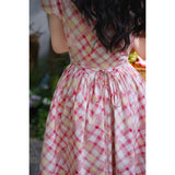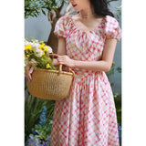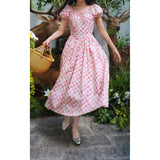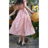 桃色格子柄のレトロワンピース