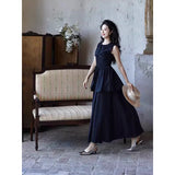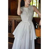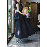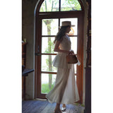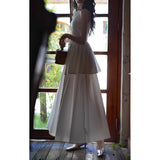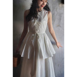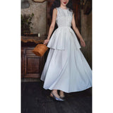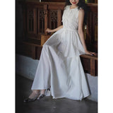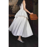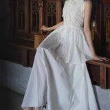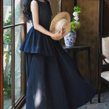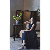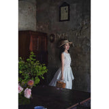 優雅に揺られるシルエットがロマンティックなムードを演出してくれる。ノースリーブトップスとロングスカートを組み合わせたようなデザインのワンピース。繊細なシワ感を持つテクスチャーで、手触りは柔らかく軽やか。スカートの裾は、まるで咲き誇る花のように軽やかでふんわりと広がり、そよ風に揺れて優雅に舞います。