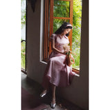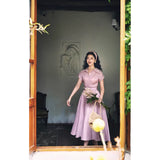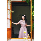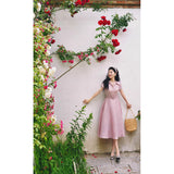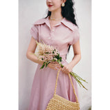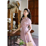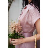 薄紅の鴇色ヘップバーンワンピース