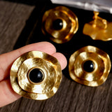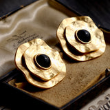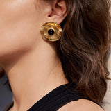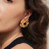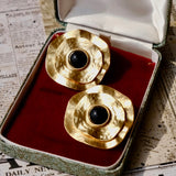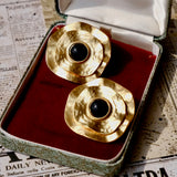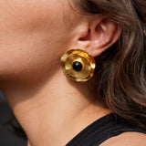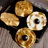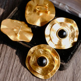 月光を浴びて金色に輝く輪環の耳飾り。凹凸とした歪みのある輪環はヴィンテージな雰囲気が漂います。中央には濡羽色に輝く黒石が神秘的で吸い込まれそうになる静謐を解き放っています。孤高の美しさを放つアイテム。