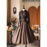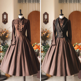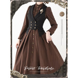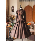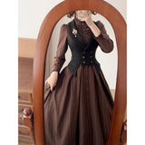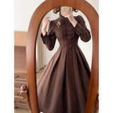 英国のお嬢様のクラシカルストライプワンピース - Brown